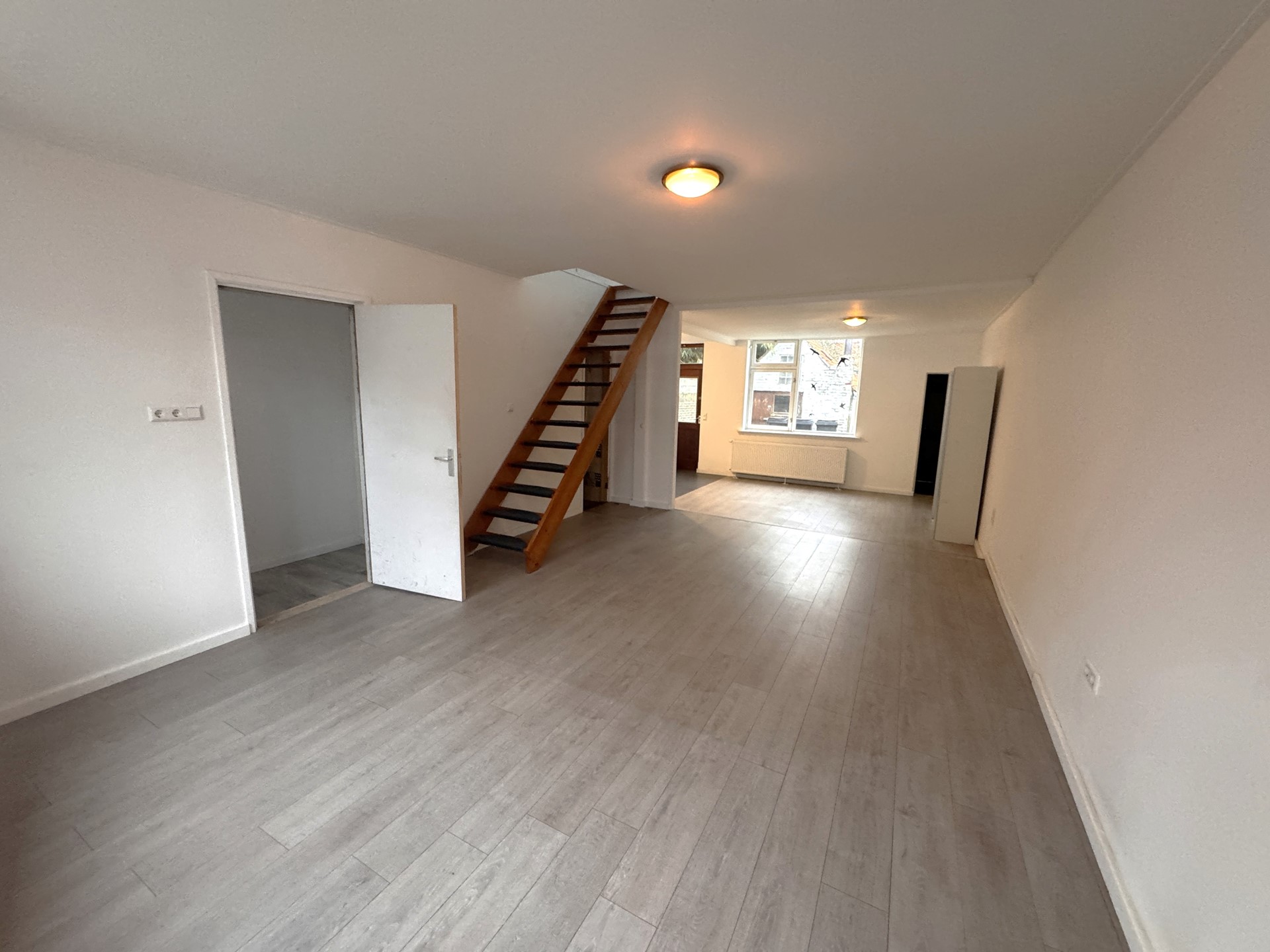 Via de hal met tegelvloer kom je binnen in de ruime woonkamer. Grote raampartijen zorgen voor veel daglicht en geven het geheel een open en prettige sfeer. De laminaatvloer en gestucte wanden maken het modern en instapklaar.