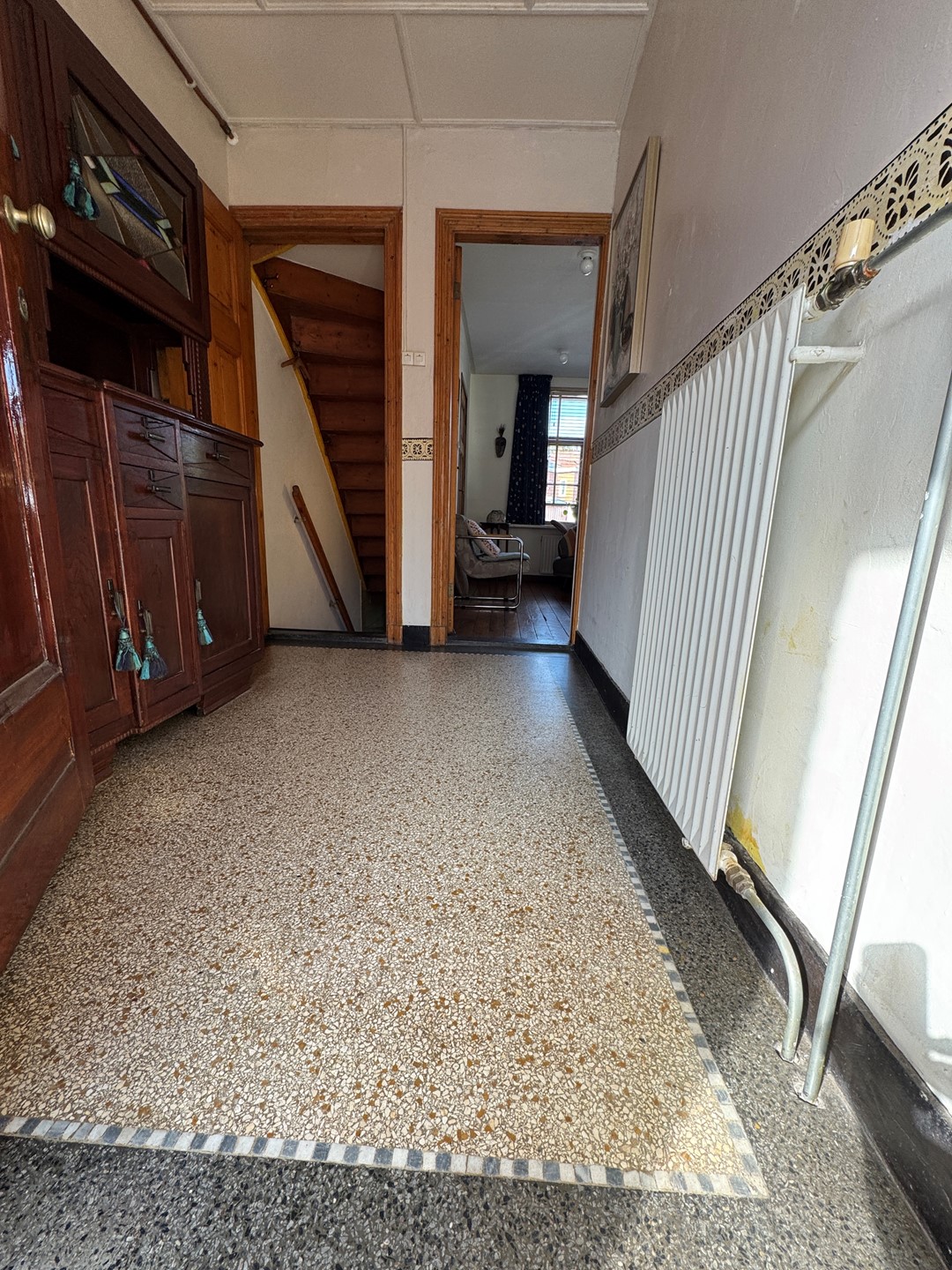* Originele paneeldeuren en een prachtige terrazzo vloer in de hal.