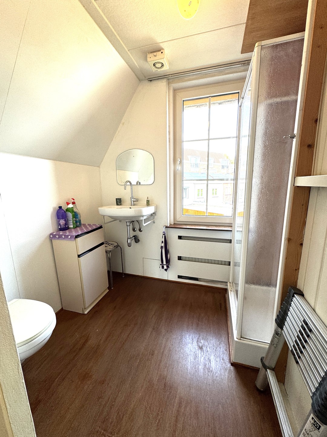 * Begane grond: lichte woonkamer met uitzicht op de sfeervolle straat.
