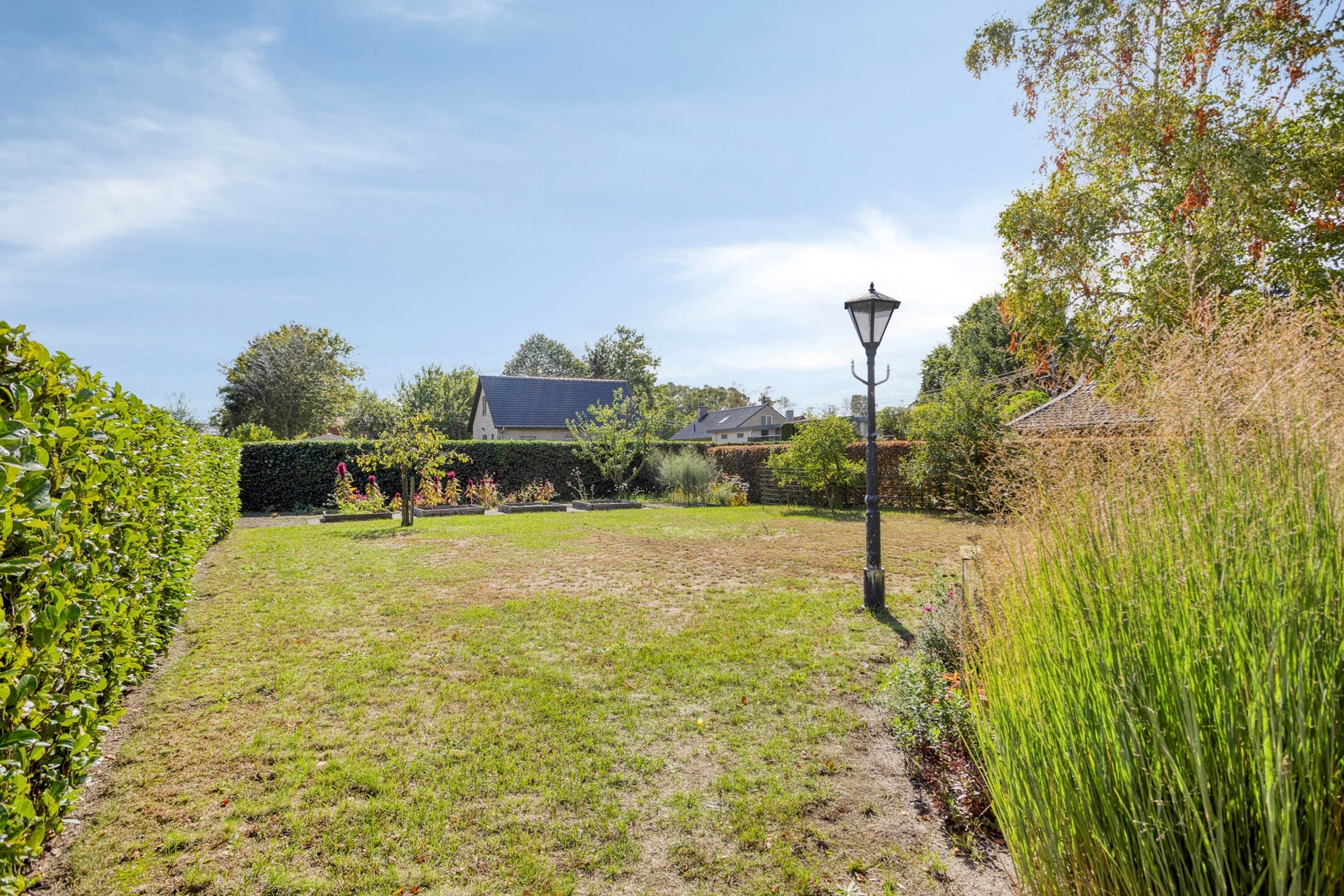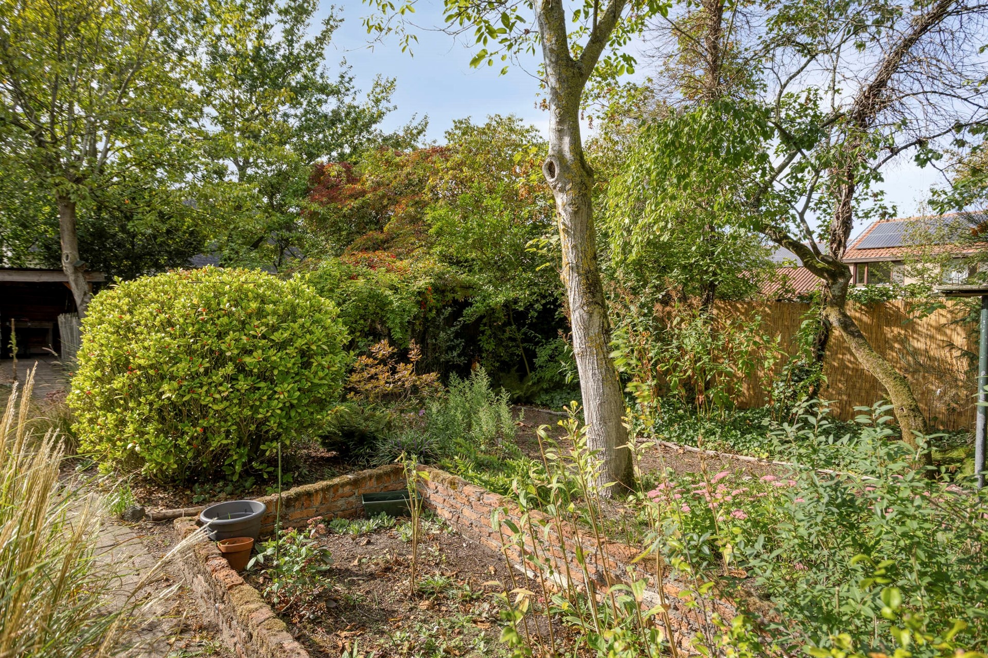 Privacyrijke tuin met groen rondom.