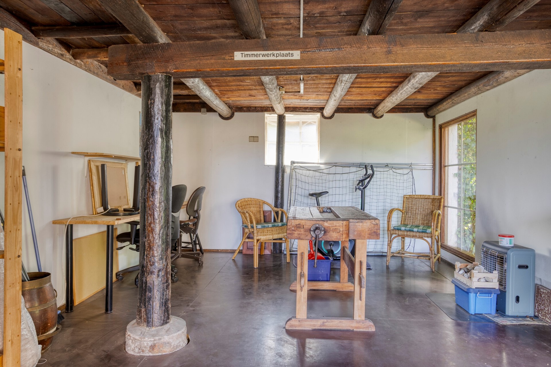 Grote schuur met atelier – ideaal voor hobby’s of opslag.