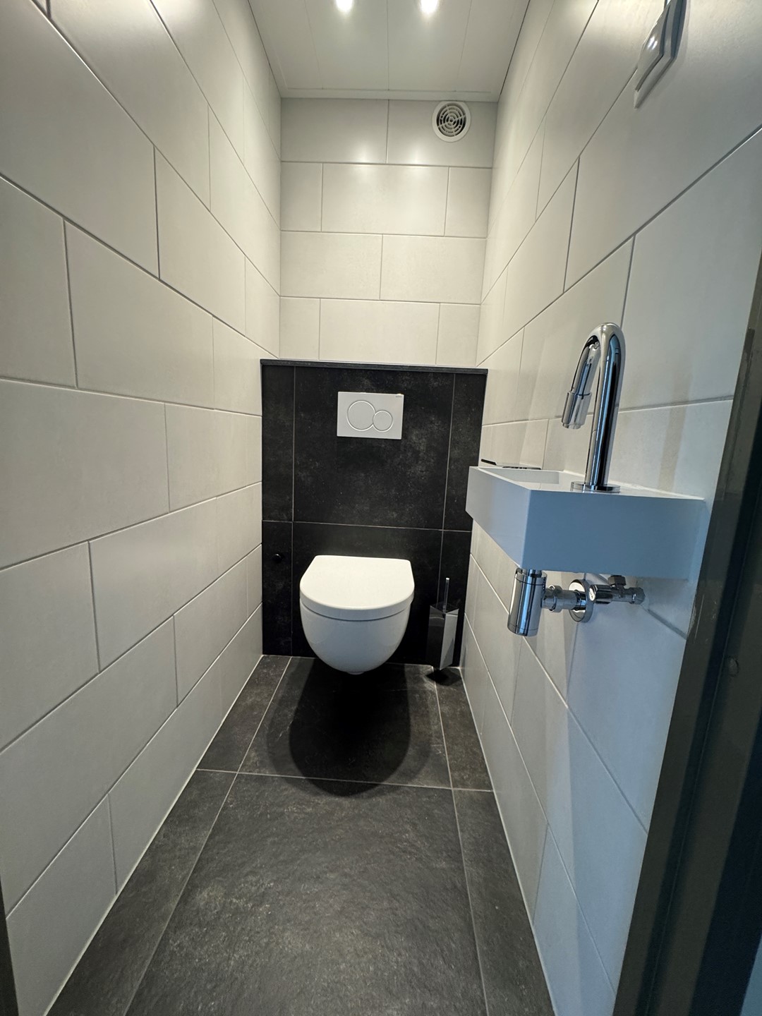 – Nieuwe badkamer met modern wastafelmeubel en inloopdouche